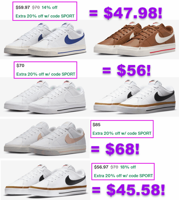 Nike Court Legacy Men’s Shoes for $56.97 (reg $70)