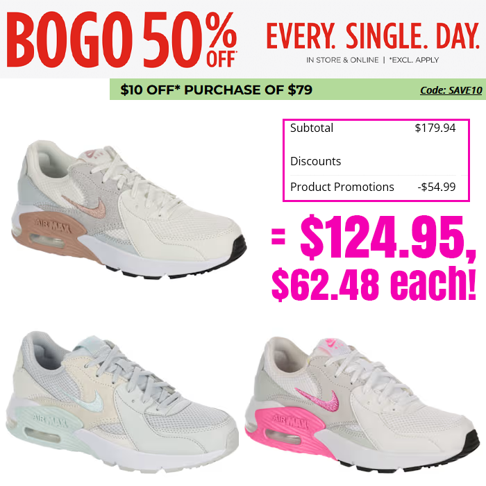 Nike Women’s Air Max Excee Sneaker for $89.97 each (Reg $99.99)