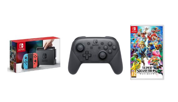 Nintendo Switch Gray Console with Super Smash Bros Ultimate, Mario Odyssey and Pro Controller for $549