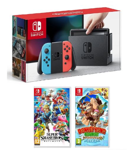 Nintendo Switch Neon 32 GB with Super Smash Bros and Donkey Kong Tropical Freeze for $415 (reg $420)