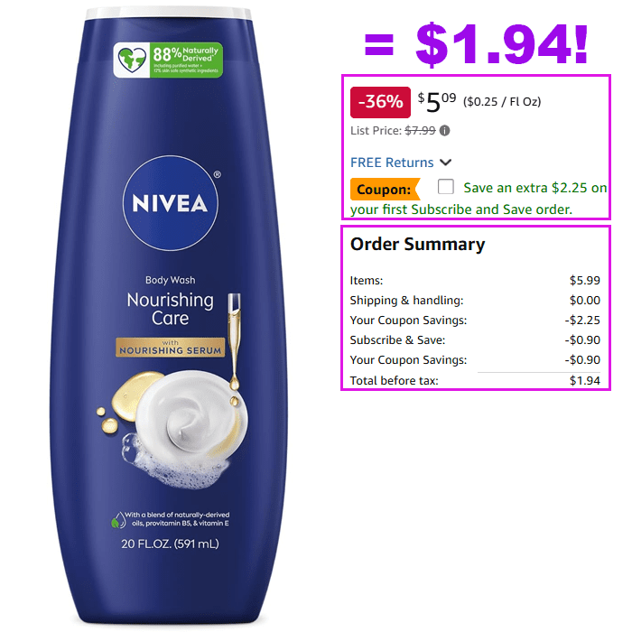NIVEA Nourishing Care Body Wash, 20 Fl Oz for $5.99 (Reg $7.99)