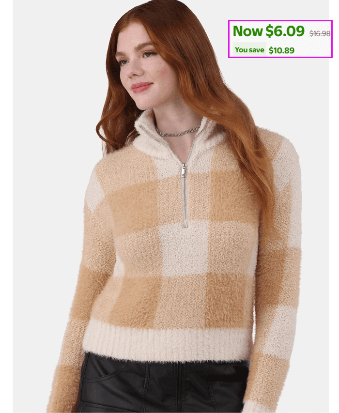 No Boundaries Plaid Quarter Zip Pullover Sweater for $6.09 (Reg $16.98)!