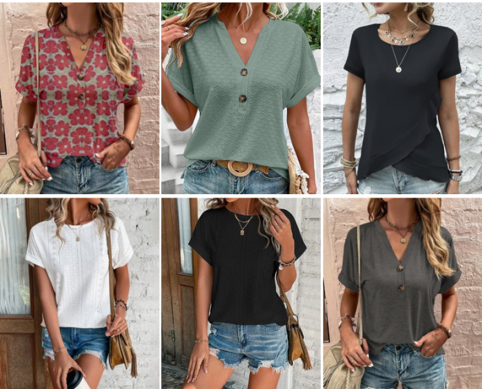 These are darling tops for a steal! Choose from a variety of prints and solids in several styles.