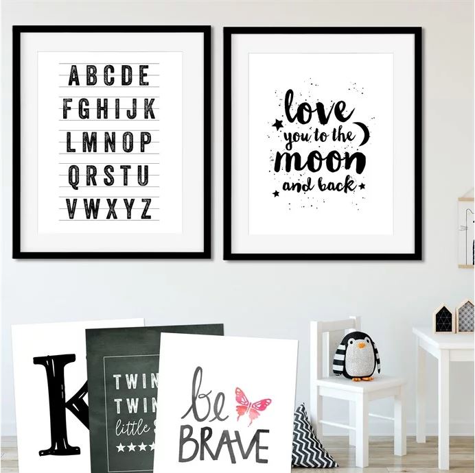 - Special Note: The prints with the letters come as shown… Some of the alphabet letters are lowercase and some are uppercase. This is done as a style choice and it will look great in every room!