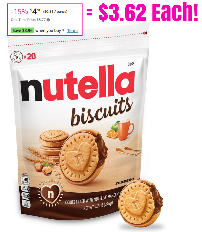 Nutella Biscuits, 20 Count Cookies, Hazelnut Spread with Cocoa, 9.7 Oz for $4.96