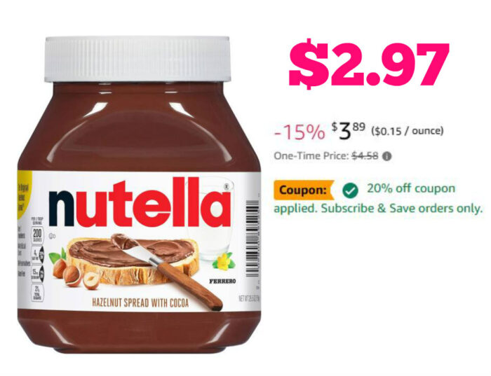 Nutella Hazelnut Spread With Cocoa, 26.5 Oz Jar for $3.48 (Reg $4.97)!