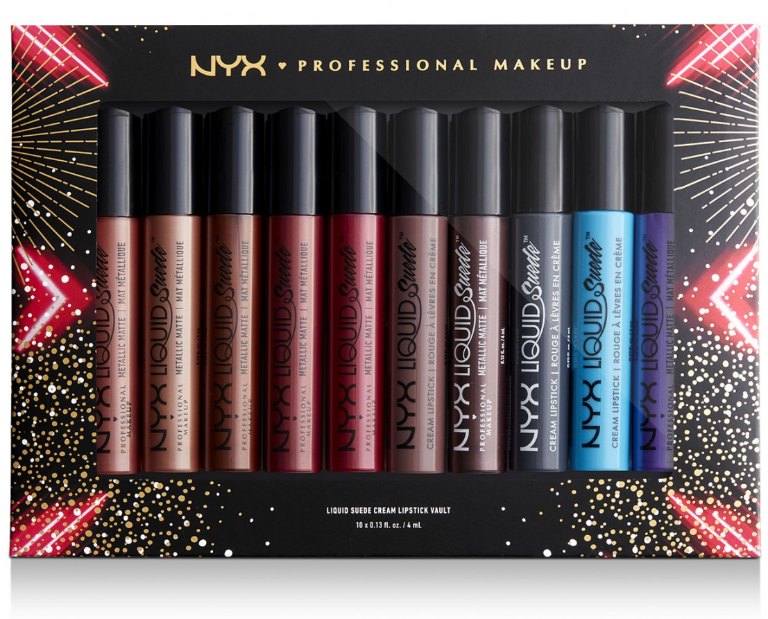 NYX Professional Makeup 10-Pc. Love Lust Disco Liquid Suede Lipstick Vault Set for $22 (Reg $55)