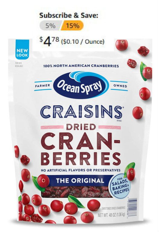 Ocean Spray Craisins Dried Cranberries, Original, 48 Ounce $5.62