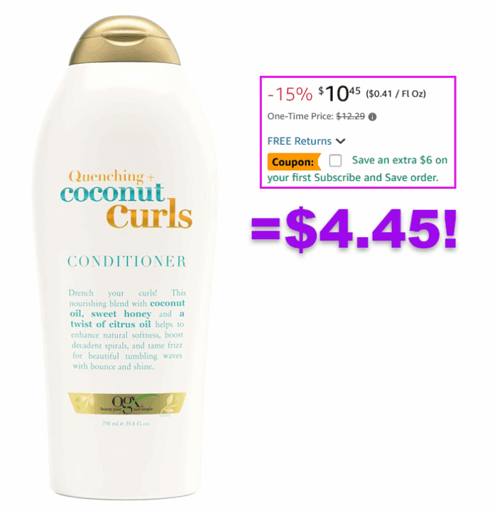 OGX Quenching + Coconut Curls, Moisturizing Conditioner for Curly Hair, 25.4 fl oz for $12.29