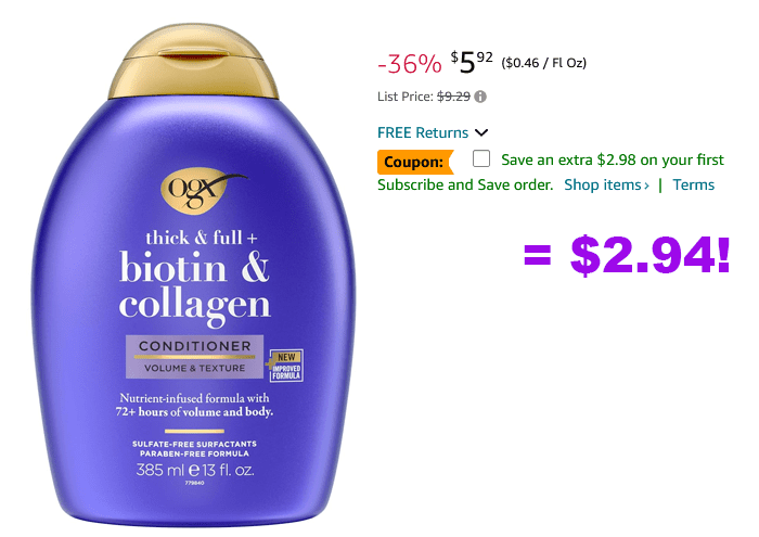 OGX Thick & Full + Biotin & Collagen Volumizing Conditioner for $6.97 (Reg $9.29)!