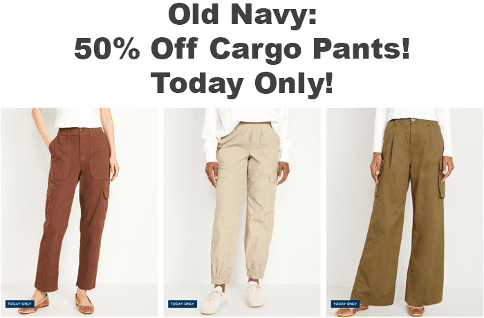 Woohoo! Today only, Old Navy has a big selection of Cargo Pants on sale for 50% off!