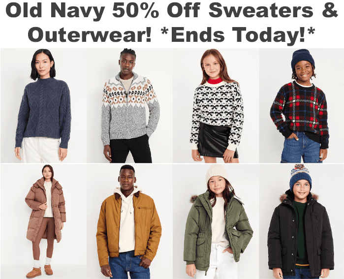 Old Navy 50% Off Sweaters & Outerwear! *Ends Today!*