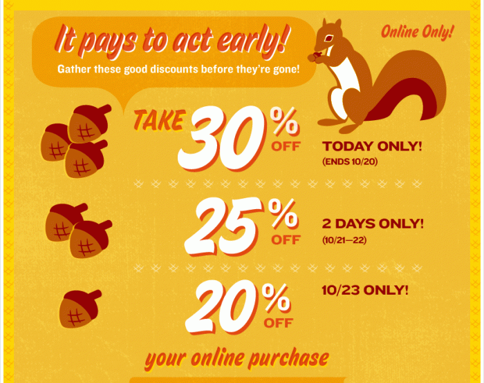 Old Navy It Pays To Act Early Sale October 20-23 Online Only!
