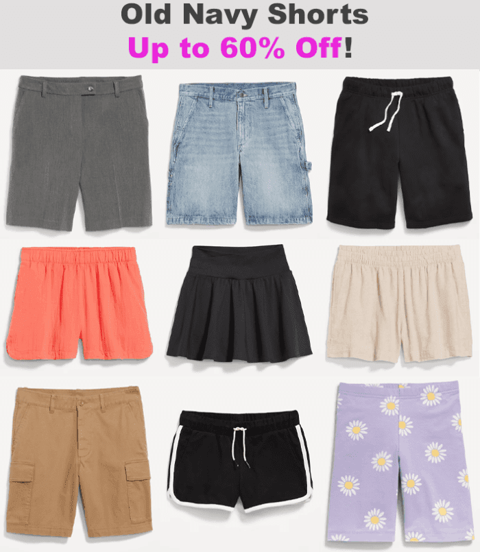 If you need some more shorts this summer, check out Old Navy today for a large variety of sizes and styles up to 60% off!