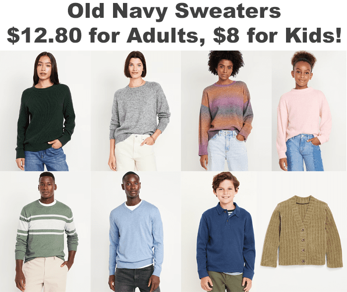 Old Navy Sweaters: $16 for Adults, $10 for Kids!