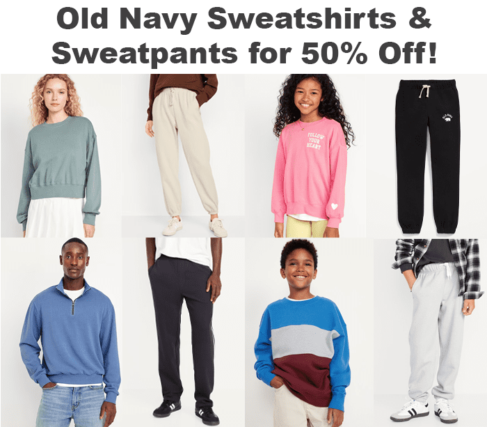 Old Navy Sweatshirts & Sweatpants for 50% Off!