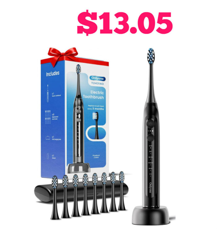 Onlyone Sonic Electric Toothbrush with 8 Brush Heads $23.73 (reg $27.76)