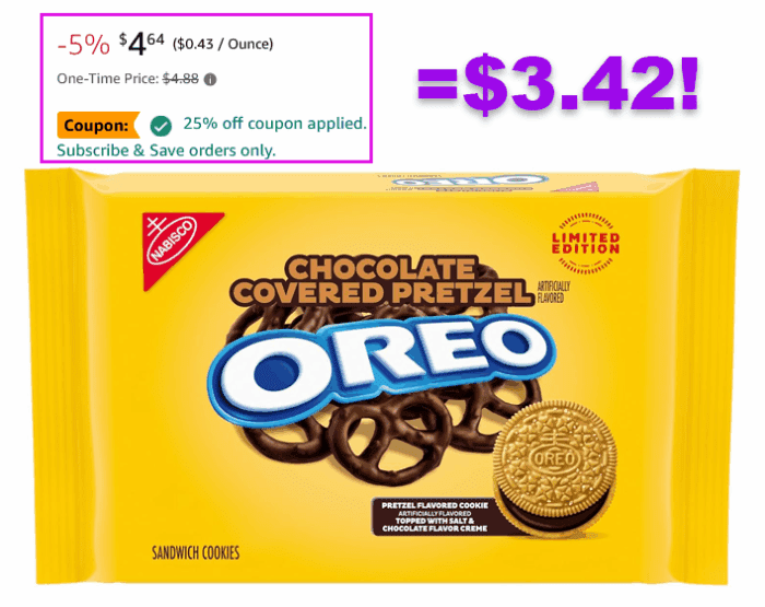 OREO Chocolate Covered Pretzel Sandwich Cookies, Limited Edition, 10.68 oz for $4.88