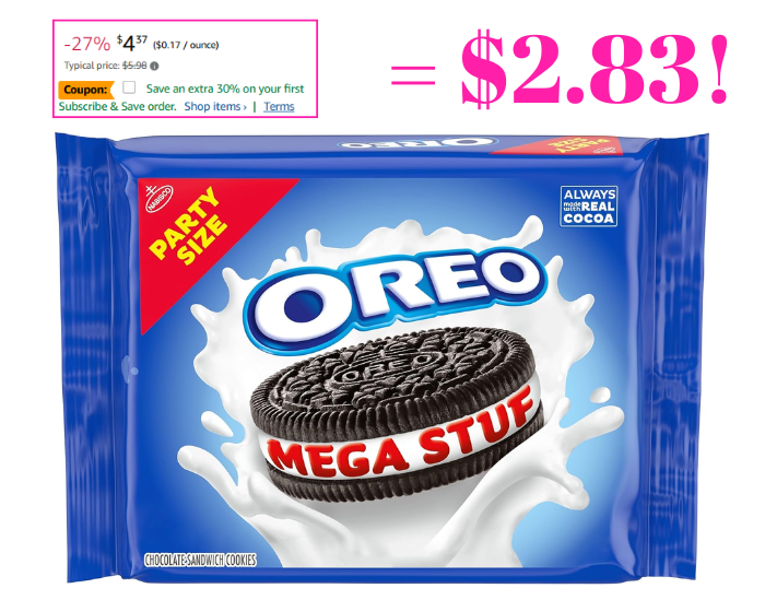 OREO Mega Stuf Chocolate Sandwich Cookies, Party Size, 1 lb 9.35 oz for $2.83 (Reg $5.98)