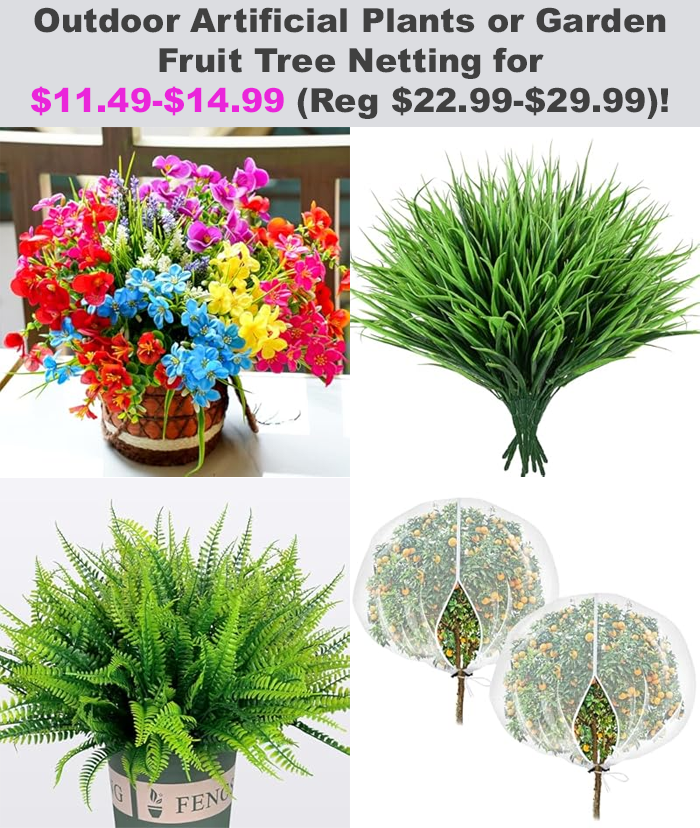My mother-in-law recently purchased some artificial plants for her patio that she wouldn’t need to worry about watering, and they’re really pretty! You can get more than one with this deal. There is also fruit tree netting if you need that for your real fruit trees.