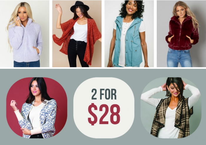 Outerwear, Vests, and Kimonos ONLY 2 For $28