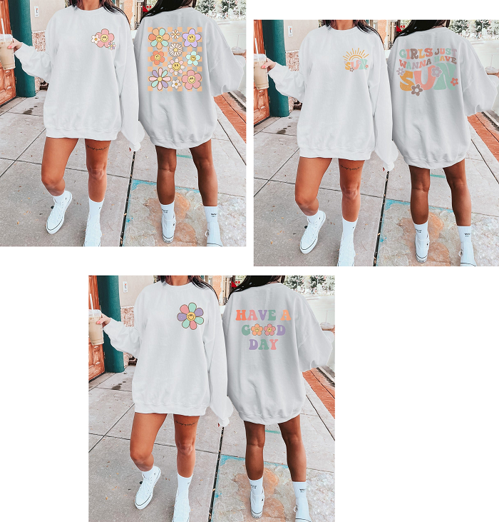Teens will LOVE these oversized sweatshirts! Choose from 3 groovy styles.