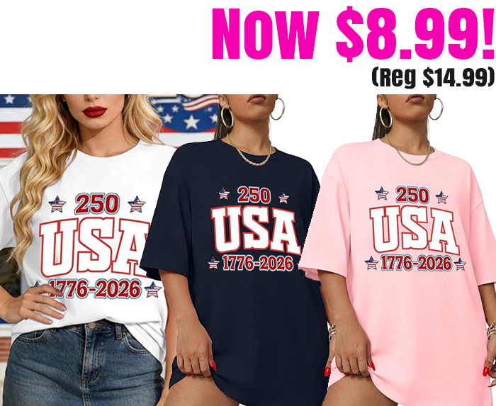 Oversized USA 250th Anniversary 1776-2026 Patriotic Graphic Tee for $14.99