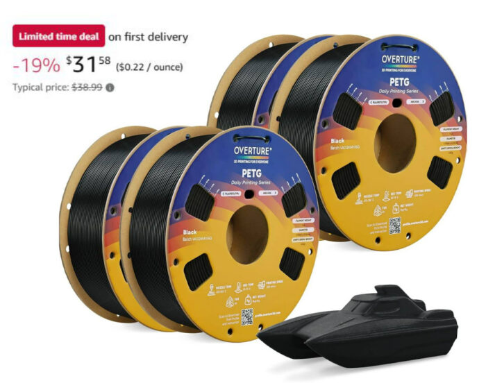 OVERTURE 4KG Bundle PETG 3D Printer Filament 1.75mm $31.58 or $33.34 (reg $38.99)