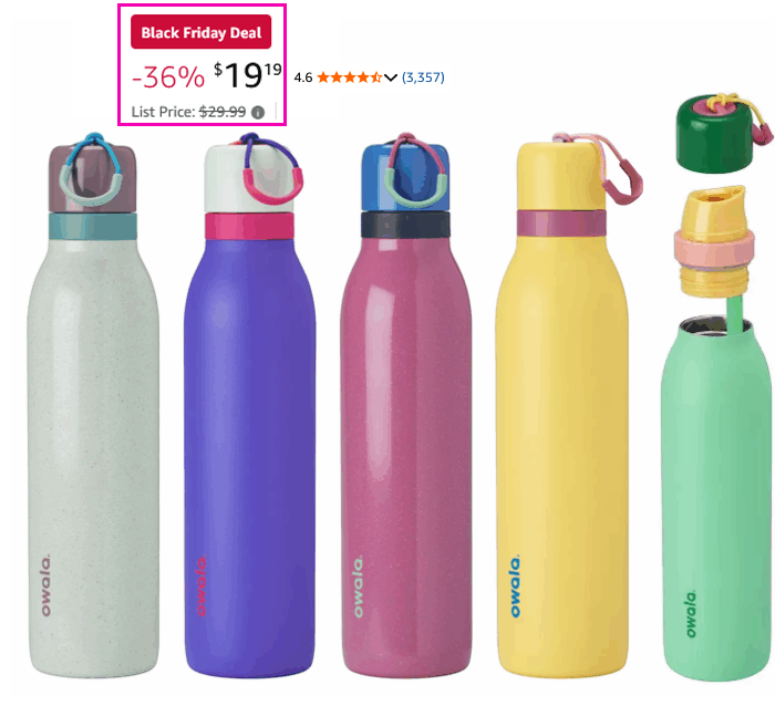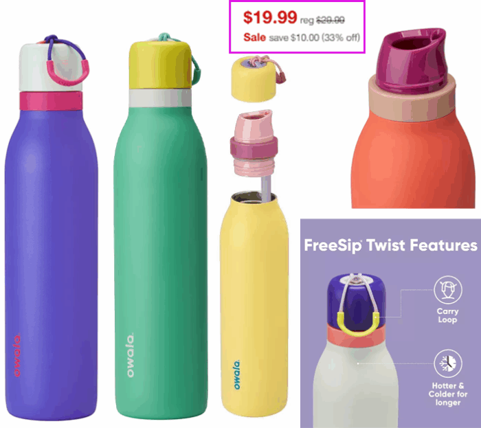 There are a bunch of colors this price! These have the popular FreeSip with a twist-top, plus a sleek shape. It can even handle carbonated drinks!
