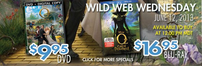 Check out the awesome deal today offered as RC Willey’s Wild Web Wednesday! Starting at 12 pm MDT, you can get Oz The Great and Powerful for just $9.95 on DVD or $16.95 on Blu-ray! This is only on available while supplies last, so get the page up and ready so you can add it to your movie collection!