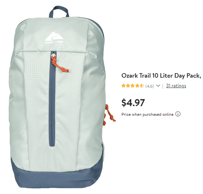 Ozark Trail 10 Liter Day Pack for $4.97!