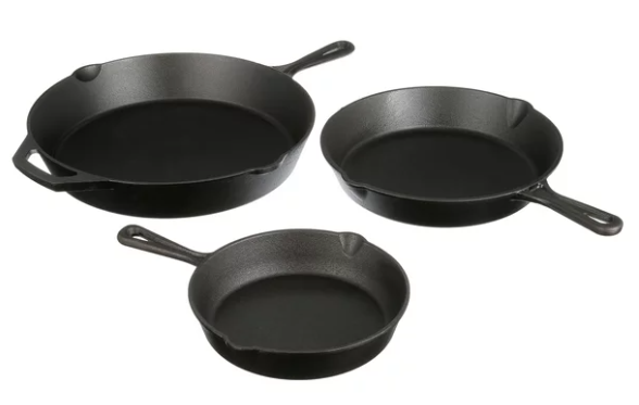 Ozark Trail 3 Piece Seasoned Oil Cast Iron Skillet Set for $14.88 (regularly $29.97)
