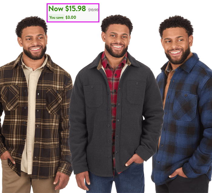 Ozark Trail Men’s Fleece Lined Shirt Jacket for $15.98 (Reg $18.98)!