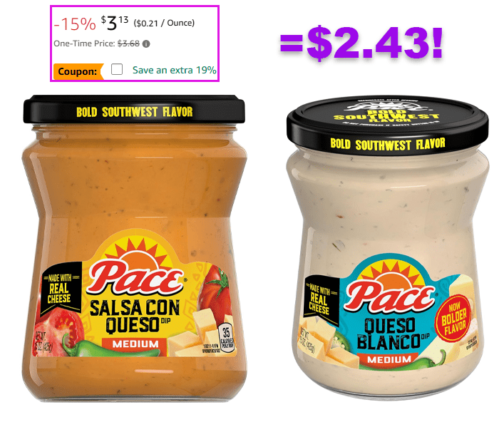 Pace Cheese Dip, 15 Oz Jar for $3.68 *Choose Queso Blanco or Salso Con Queso*