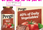 Prego Chunky Garden Combo Pasta Sauce, 23.75 Oz Jar for $1.67 (Reg $3.61), Prego Mushroom Pasta Sauce, 67 oz Jar for $3.51 (Reg $5.36)!3 months ago