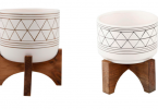 Mid-Century 5 in. White/Gold Line Ceramic Geometric Pot with Wood Stand Planter for $14.98 or the 7″ for $22.98 – Today Only 11/135 years ago