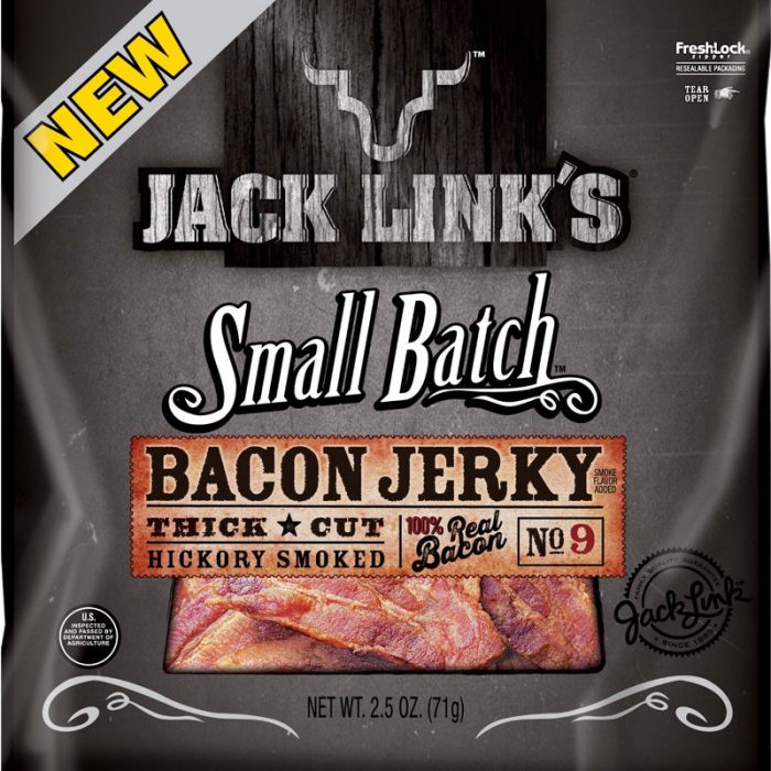 Jack Links Thick Cut Hickory Smoked Bacon Jerky 2.5 Ounce – 1 for $5.49, 3 for $15 OR 6+ for $3.99/bag + Ships Free!9 years ago