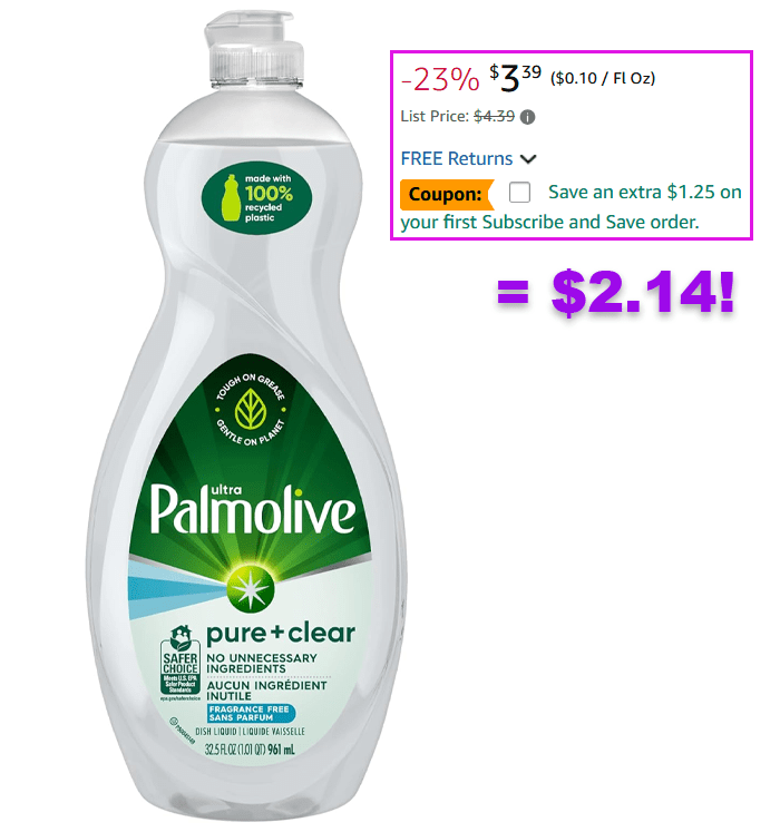 Palmolive Ultra Dishwashing Liquid Dish Soap, Pure + Clear Fragrance Free – 32.5 Fluid Ounce for $3.99 (Reg $4.39)