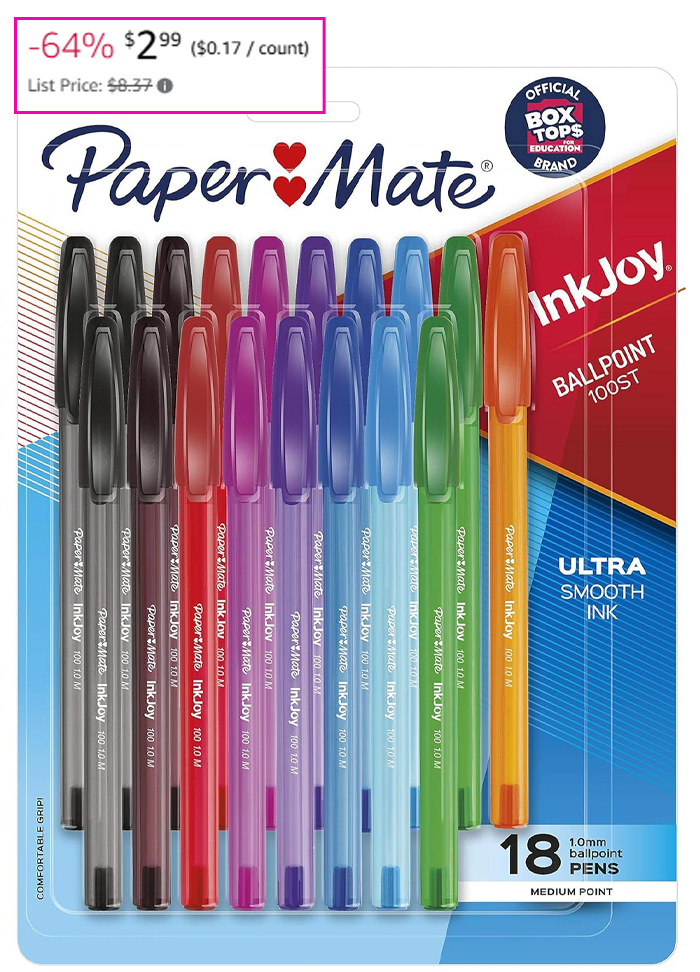 Paper Mate InkJoy 100ST Ballpoint Pens, Medium Point (1.0mm), Assorted, 18 Count from $2.69 (Reg $8.37)!