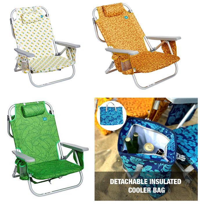 These beach chairs fold up easily, and they include a detachable insulated cooler bag! They’re perfect for the beach, campsite or lakefront — or your yard, deck or patio.