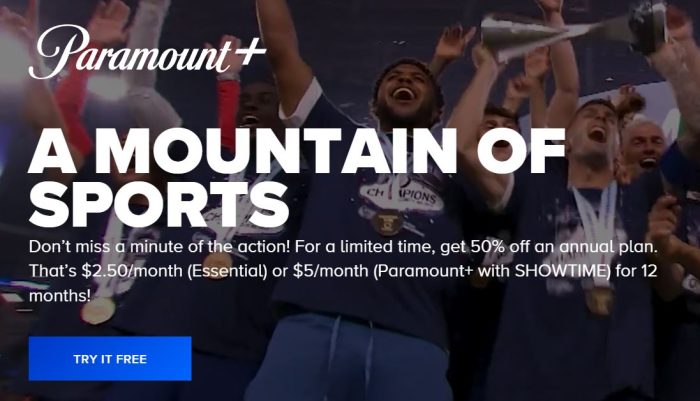 That’s $2.50/month (Essential) or $5/month (Paramount+ with SHOWTIME) for 12 months!