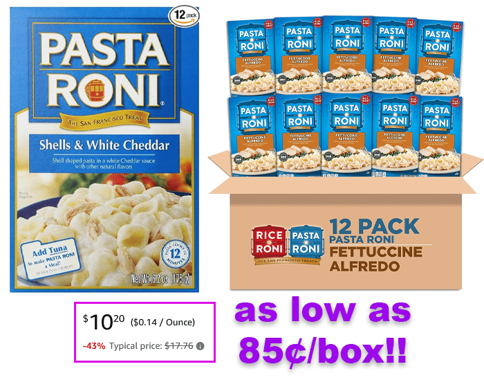 Pasta Roni Garlic Alfredo Fettuccine or Shells & White Cheddar (Pack of 12) for $12 (Reg $17.76)