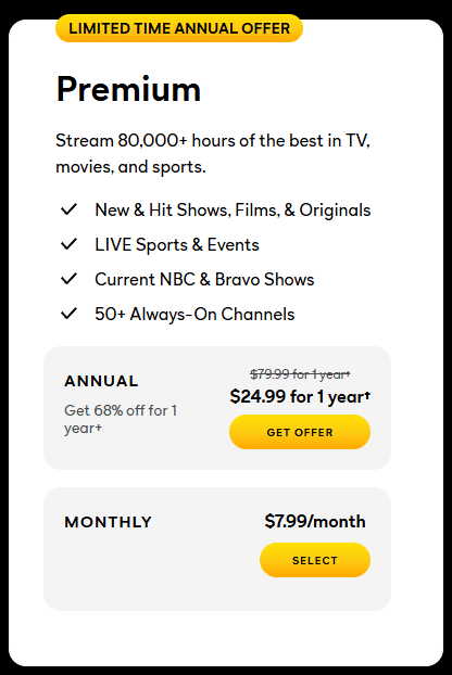 • are not currently a Peacock Premium or Premium Plus subscriber.