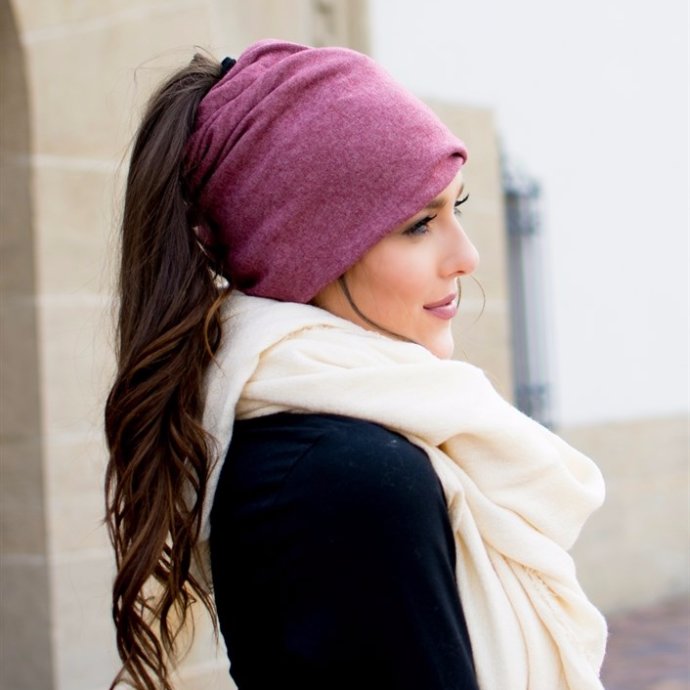 These peak-a-boo beanies are a fun way to wear your hair up with a warm hat! Choose from a bunch of solid colors as well as prints. This will be a great stocking stuffer or gift for teens and women!