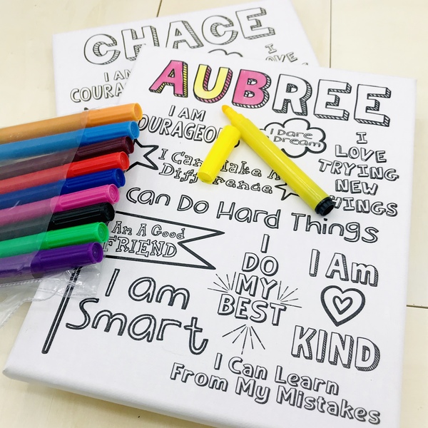 Personalized Affirmation Coloring Canvases + 10 Pack of Markers for $9.99 (reg $19.99)