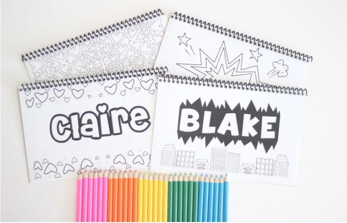Looking for a screen-free activity for your kids? This is it! These personalized coloring books are made to keep kids busy and engaged in an activity. Get everyone involved and make it a family activity. With each order, you get one personalized coloring book and a box of 5 mini colored pencils. It comes wrapped and ready to give as a gift. Each book measures about 8.5 inches by 5.5 inches. This size means that they are half the sheet of a full-size paper. This is a great size for kids to set on their laps without the use of a hard surface below the book. They include a cardboard backing to help keep the books sturdy. Coloring pages and cardboard backing are bound together with coil binding.