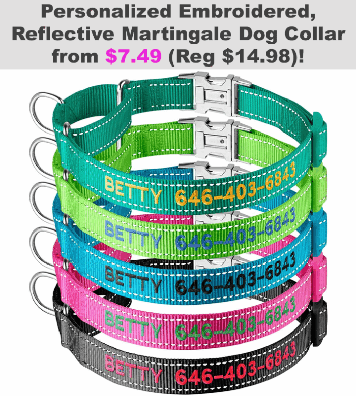 Personalized Embroidered, Reflective Martingale Dog Collar from $14.98