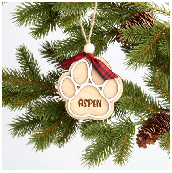 Each pet ornament is laser cut and engraved with your beloved pet’s name.