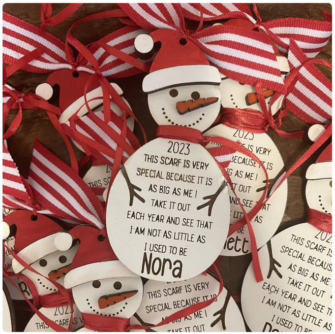 Personalize this darling ornament with your child’s name, and cut the string to their height! They’ll love measuring each year to see how much taller they are.
