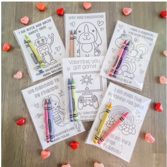 Personalized Valentine Coloring Cards, Pack of 24 for $7.95 (Reg $16.95)